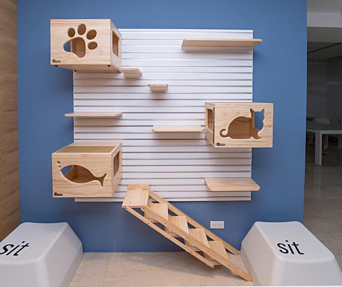 此外現(xiàn)在流行的簡約風也是不錯的選擇,畢竟貓咖還是屬于餐飲店,干凈敞亮還是很重要的。另外在細節(jié)方面,也可以專門留出一塊地方坐留言或照片墻,可以提升客戶在店里的互動體驗感,這一點在很多咖啡店和甜品店都有,的確是可以產(chǎn)生不錯的互動效果。