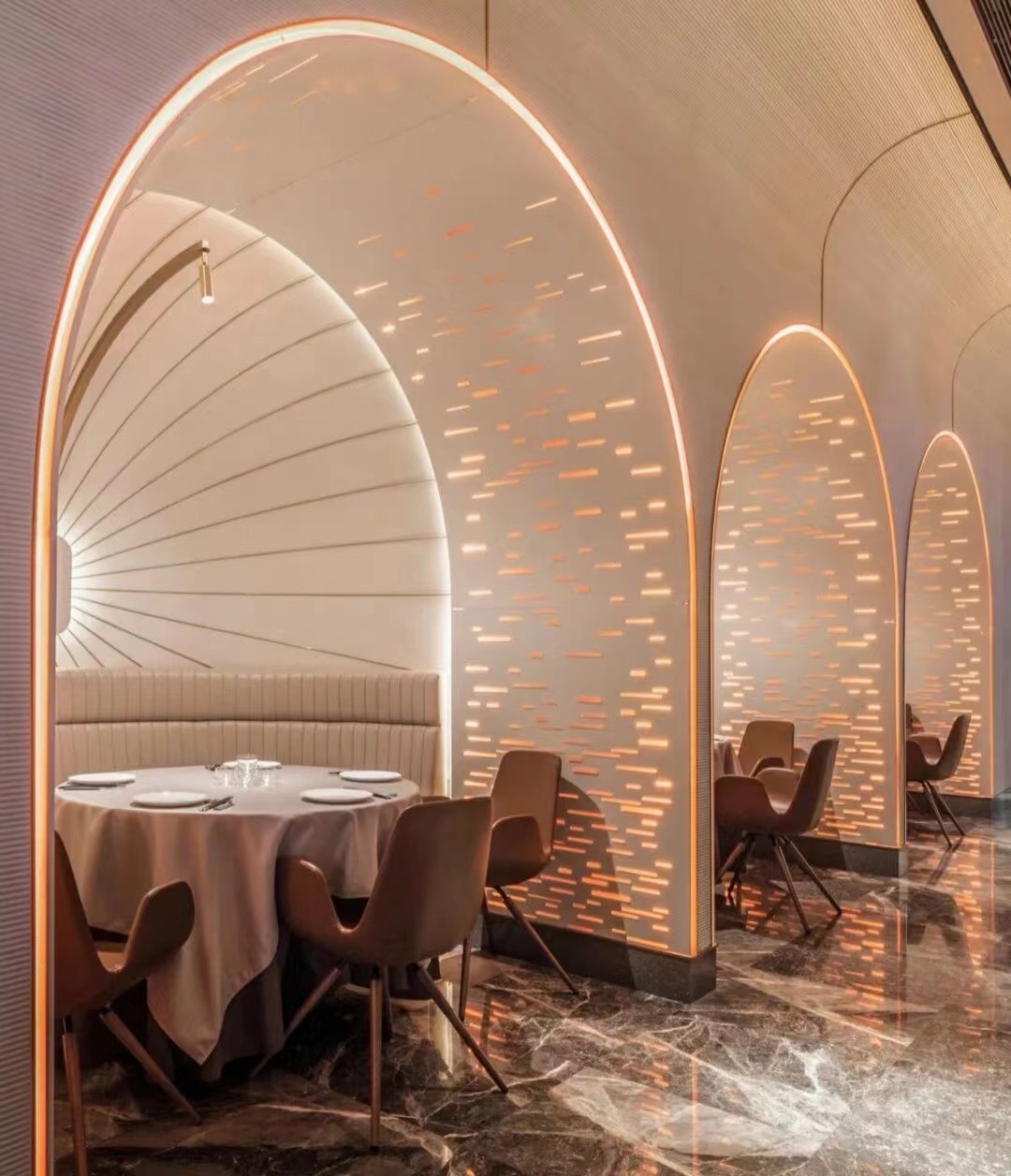 桌椅是連鎖餐飲發(fā)展空間中極為重要的組成部分元素,所有的消費(fèi)心理活動(dòng)幾乎都是可以圍繞著空間環(huán)境這一要素環(huán)境要素展開的。桌椅的形態(tài)多樣,組合管理方式方法靈活。桌椅的布局形式應(yīng)結(jié)合中國餐飲市場(chǎng)空間、消費(fèi)社會(huì)團(tuán)體數(shù)量、既有空間意識(shí)形態(tài)、建筑工程結(jié)構(gòu)及設(shè)施設(shè)備、陳設(shè)綠化等要素之間進(jìn)行一個(gè)綜合性考慮,恰如其分的桌椅組合與形態(tài)的選擇不僅能節(jié)省空間,滿足不同文化消費(fèi)群體的需求,還能分割空間,改變?nèi)肆鲃?dòng)線。