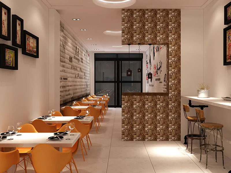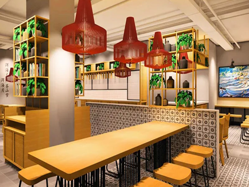依據(jù)當(dāng)?shù)氐牧?xí)俗進行主題設(shè)計的小吃店也是比較多的,地域風(fēng)在店面裝修上下足了功夫,既要尊重所在地的文化傳統(tǒng),又要展現(xiàn)不同地域和民族的文化多樣性。應(yīng)以素雅、潔凈材料做裝飾,如漆、局部木制、金屬,并用燈具作襯托,有時可適當(dāng)降低吊頂,可給人以親切感。營造出一種清新、優(yōu)雅的氛圍,以增加就餐者的食欲,給人以寬敞感。